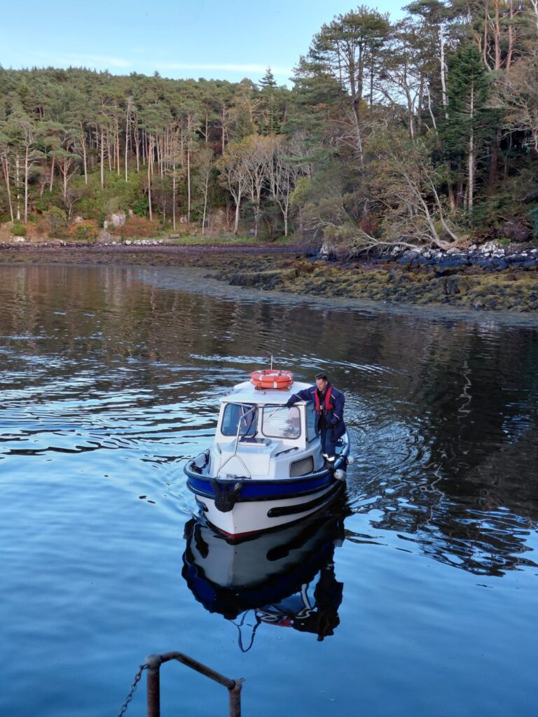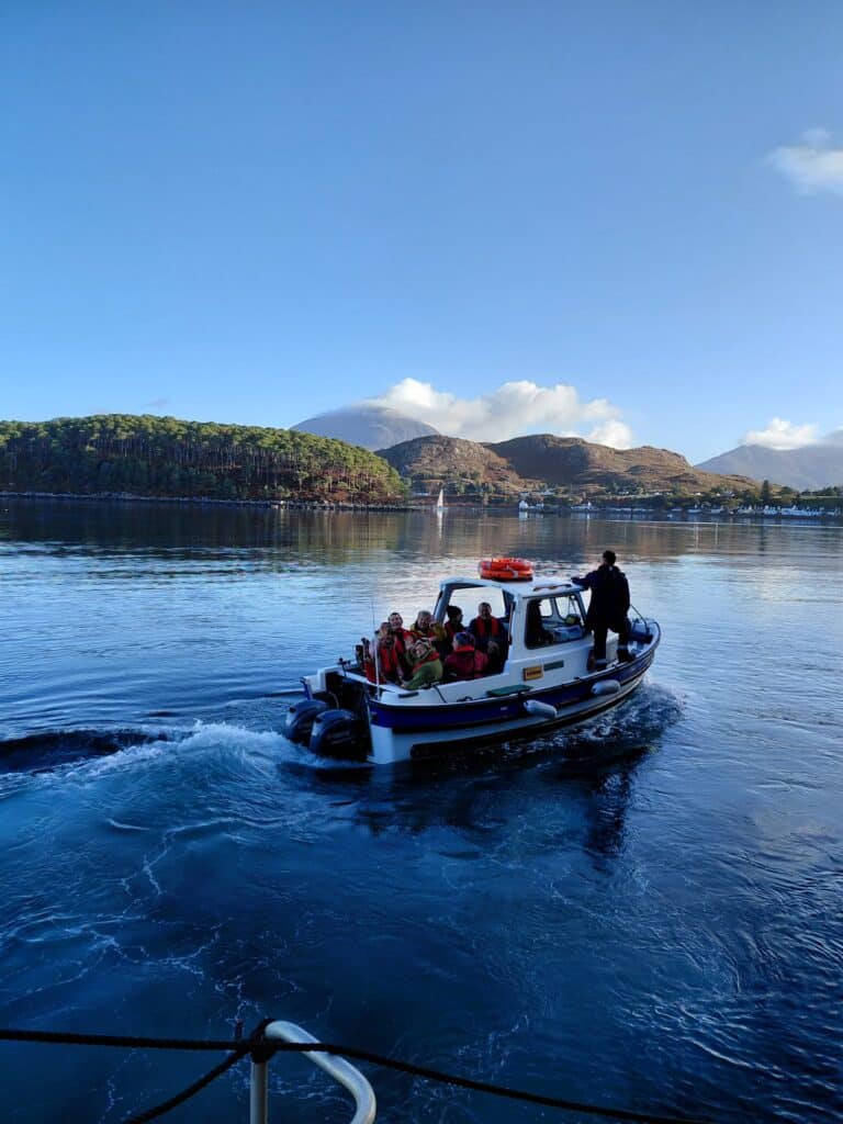The fine weather returned to welcome us all ashore at picturesque and remote Shieldaig. Walkers strode out for longer walks along the headland (yes, including ‘that’ section of slope with a chain so well described by one of our guides), while others enjoyed strolls around the village and surrounding area. A welcome hamper of teas and coffees (and something stronger!) once again awaited us at the jetty as we rejoined the ship – tenders supplemented by the speedboat for more exhilarating rides for those who fancied it. The morning was rounded off with a Hebridean tradition – Friday Hebridean Fish and Chips, even if enjoyed on a Sunday on this occasion.