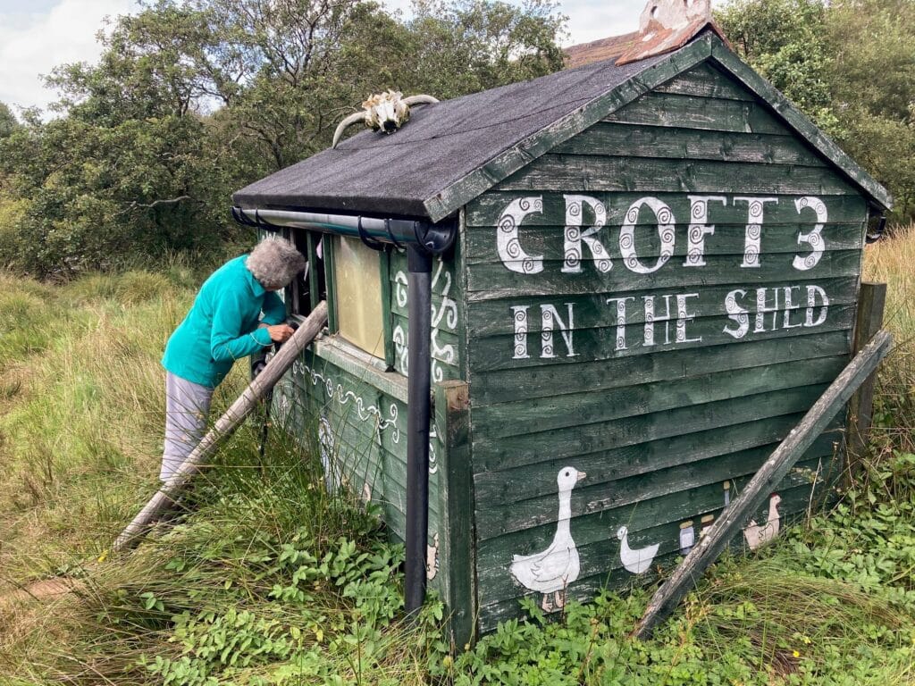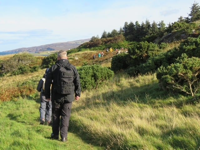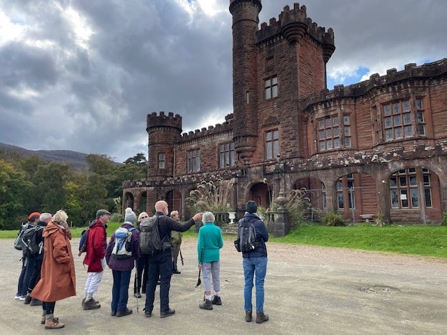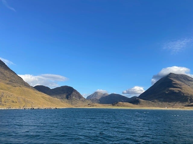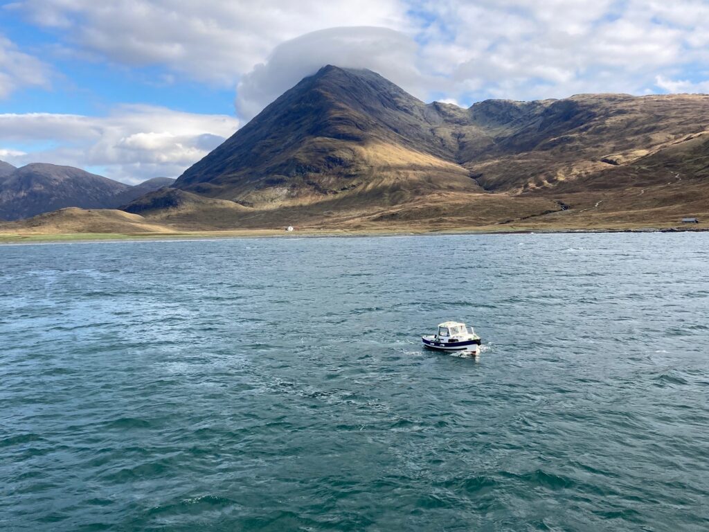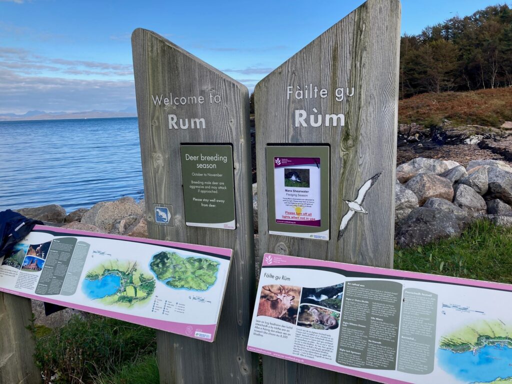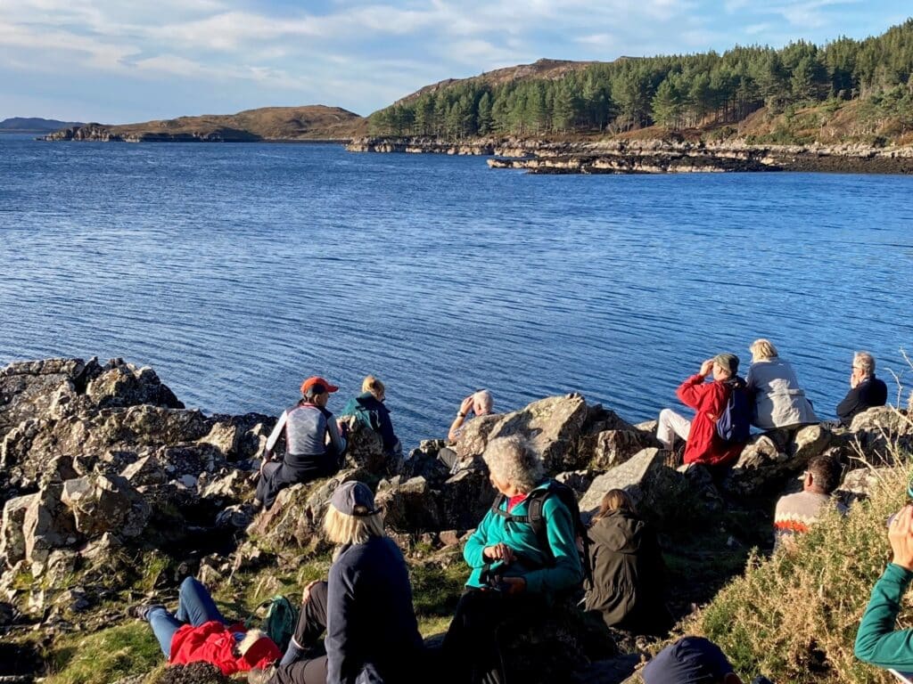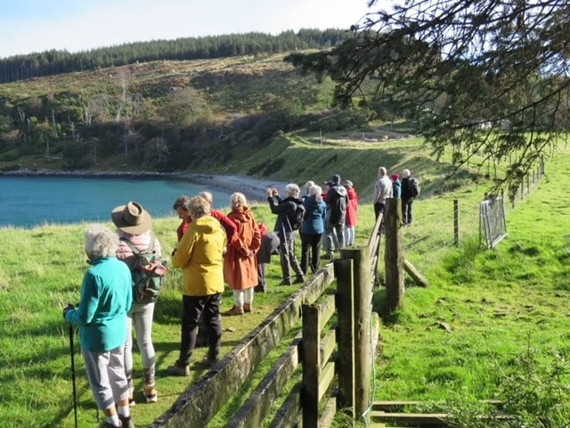 Walkers set out up towards Glen Dibidil – rewarded for their climb by far-reaching views, while Strollers stayed in the more wooded and coastal areas, stopping to hear stories of Kinloch House as we surveyed its now somewhat saddened exterior. Other guests explored more independently, visiting the otter hide in the hopes of a sighting! A hamper of teas, coffees, and of course a wee tot of ‘rum on Rum’ awaited our return at the shore.