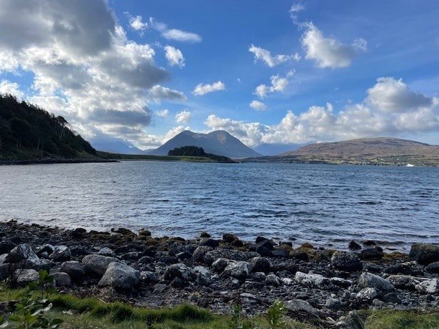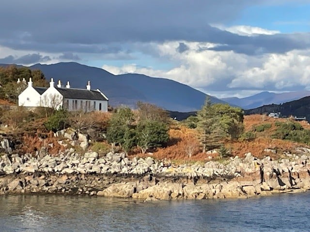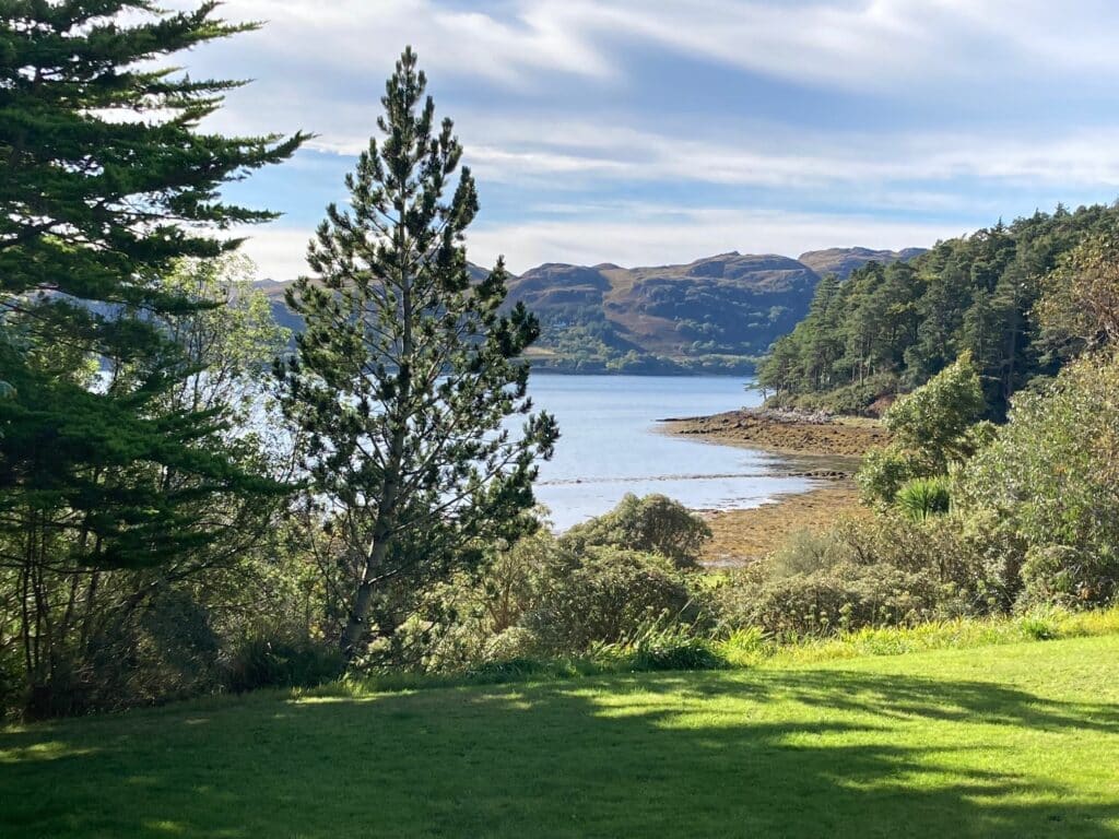 We sailed over breakfast north to Plockton where guests had the choice of a trip by coach over the Skye Bridge to Amadale Castle and Gardens, or walks in and around Plockton – either with two of our guides, or more independently. Those who were walking enjoyed highlights such as the Telford Church, local gardens, a walk up onto the Braes, and stunning views over the village and out to Loch Carron… before more Hebridean hospitality at the local hostelry rounded our morning off.