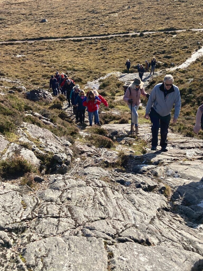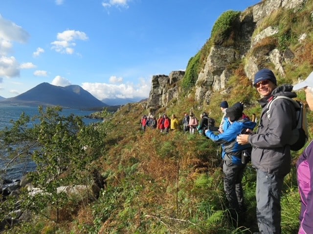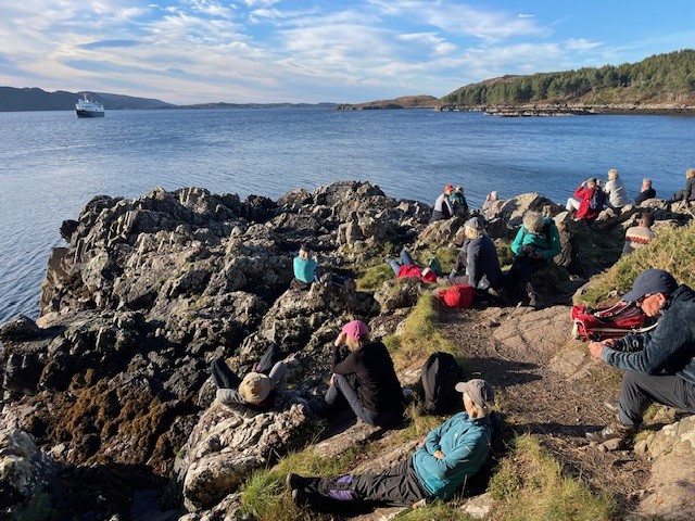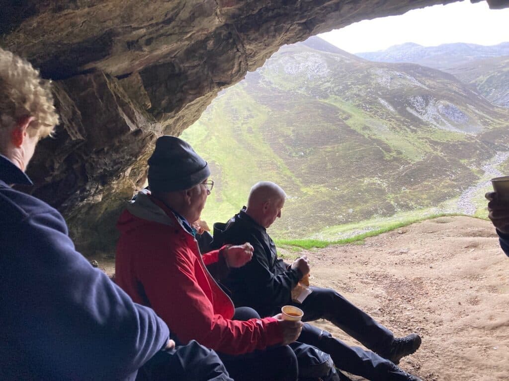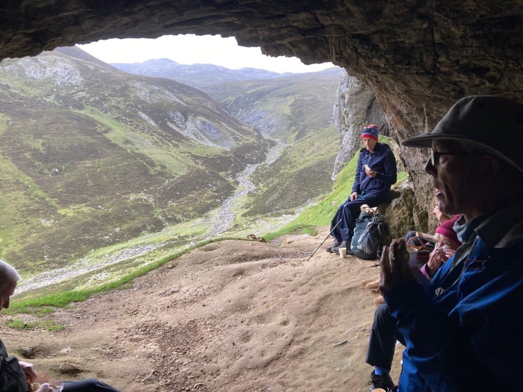 Despite a turn in the weather, the walkers set out once more for a full day ashore – taking a circular walk to explore the geological wonders at Knockan Crag and the views from the summit, followed by a second opportunity later in the morning to climb to the Bone Caves for a picnic – the caves providing welcome shelter from the forecast rain which finally came in over lunch.