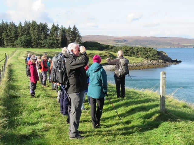 The beautiful weather continued for our morning visit to Raasay. Strollers enjoying a visit to the newly opened distillery, with walks in the grounds of Raasay House followed by further hospitality in the form of coffee and excellent cakes. Walkers hugged the coastline to admire the clear views across to the north of Skye before turning inland through woods and on up to Temptation Hill… a wonderful walk, with still enough time for coffee and cake before returning to the ship.