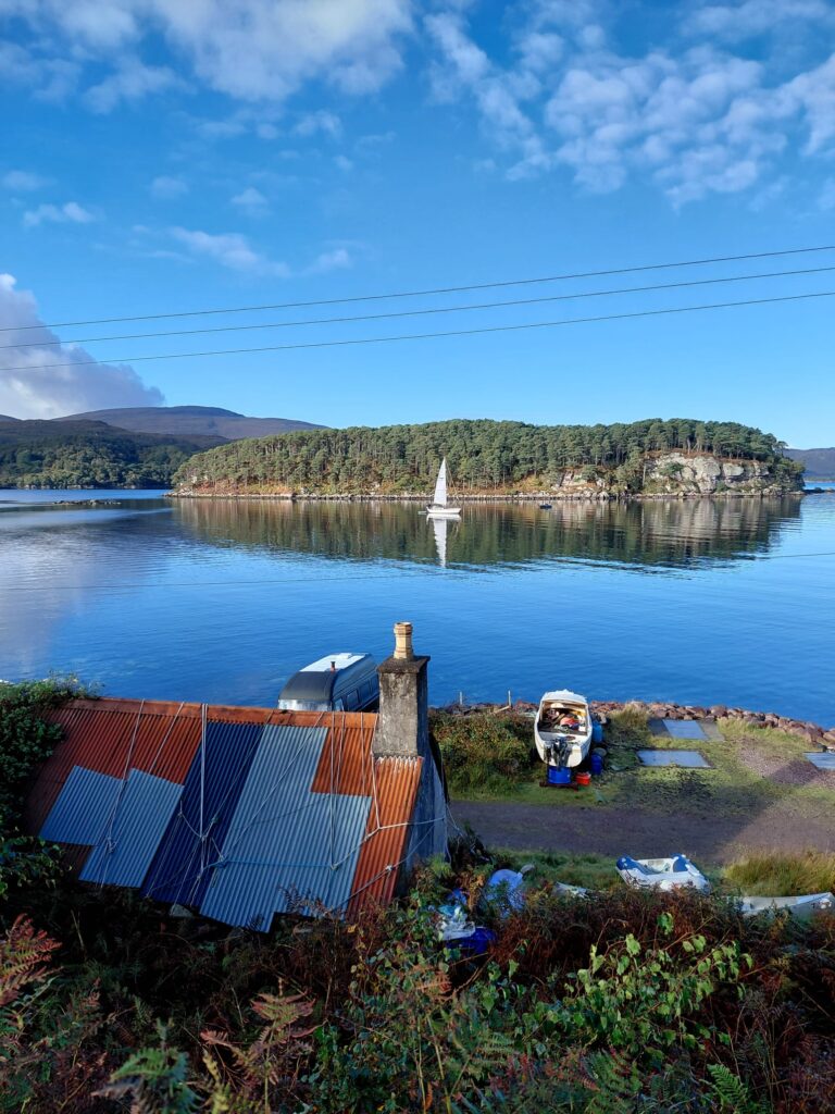Strollers took a coach to Corrieshalloch Gorge and enjoyed the amazing falls and gorge scenery at their own pace, returning onboard for lunch before the chance to go to the Knockan Crag visitor centre themselves, or to explore Ullapool and its shops and sights independently. We set sail for Shieldaig in the early evening.